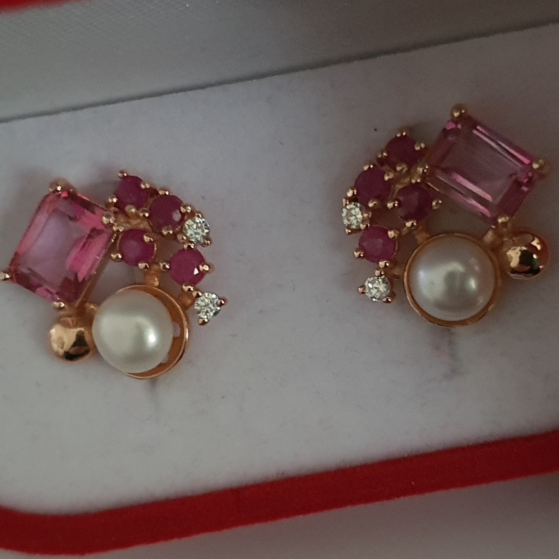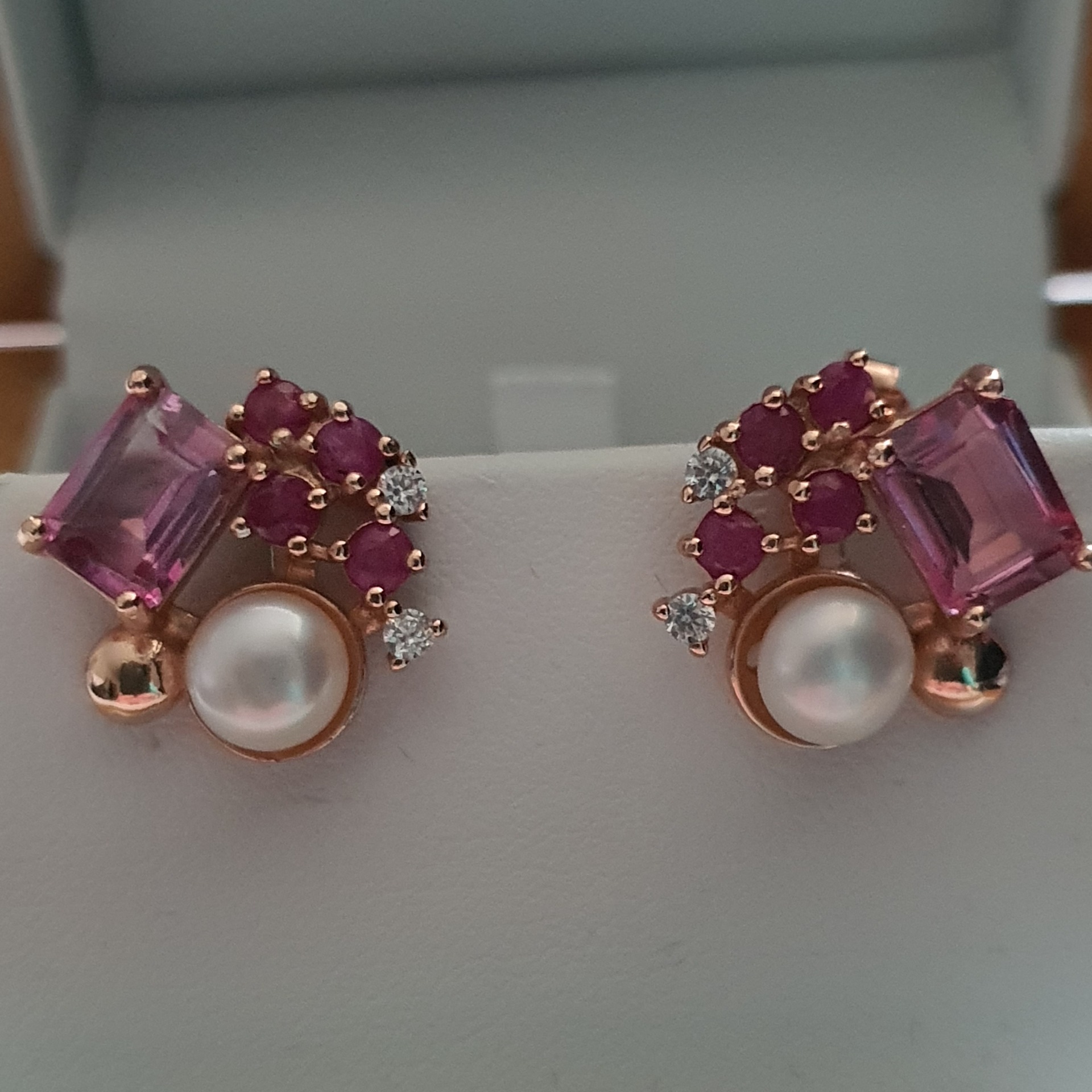 cercei argint 925 vermeil aur roz 14k cu perle, topaze, safire si CZ (cod produs: F104.39)