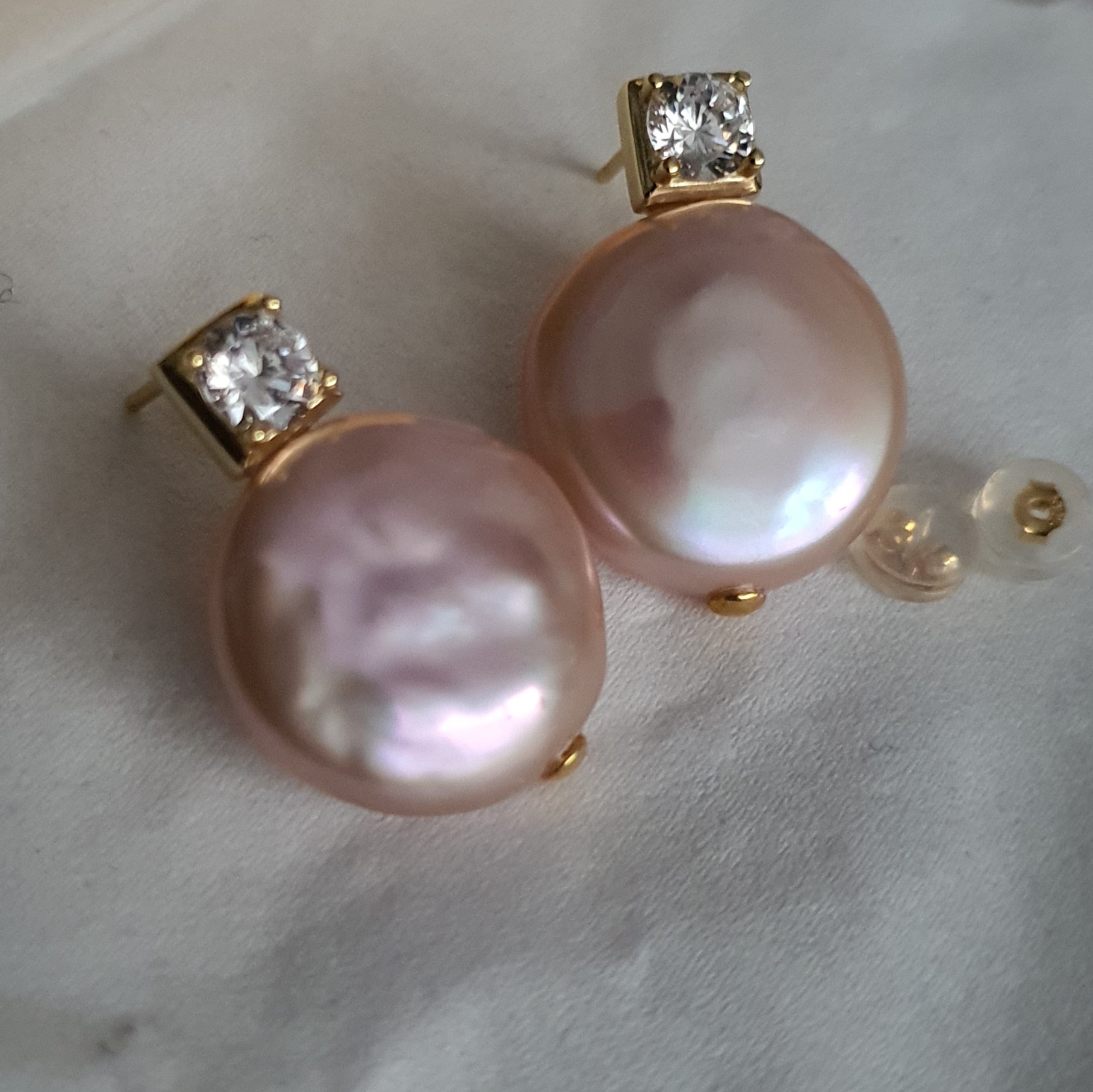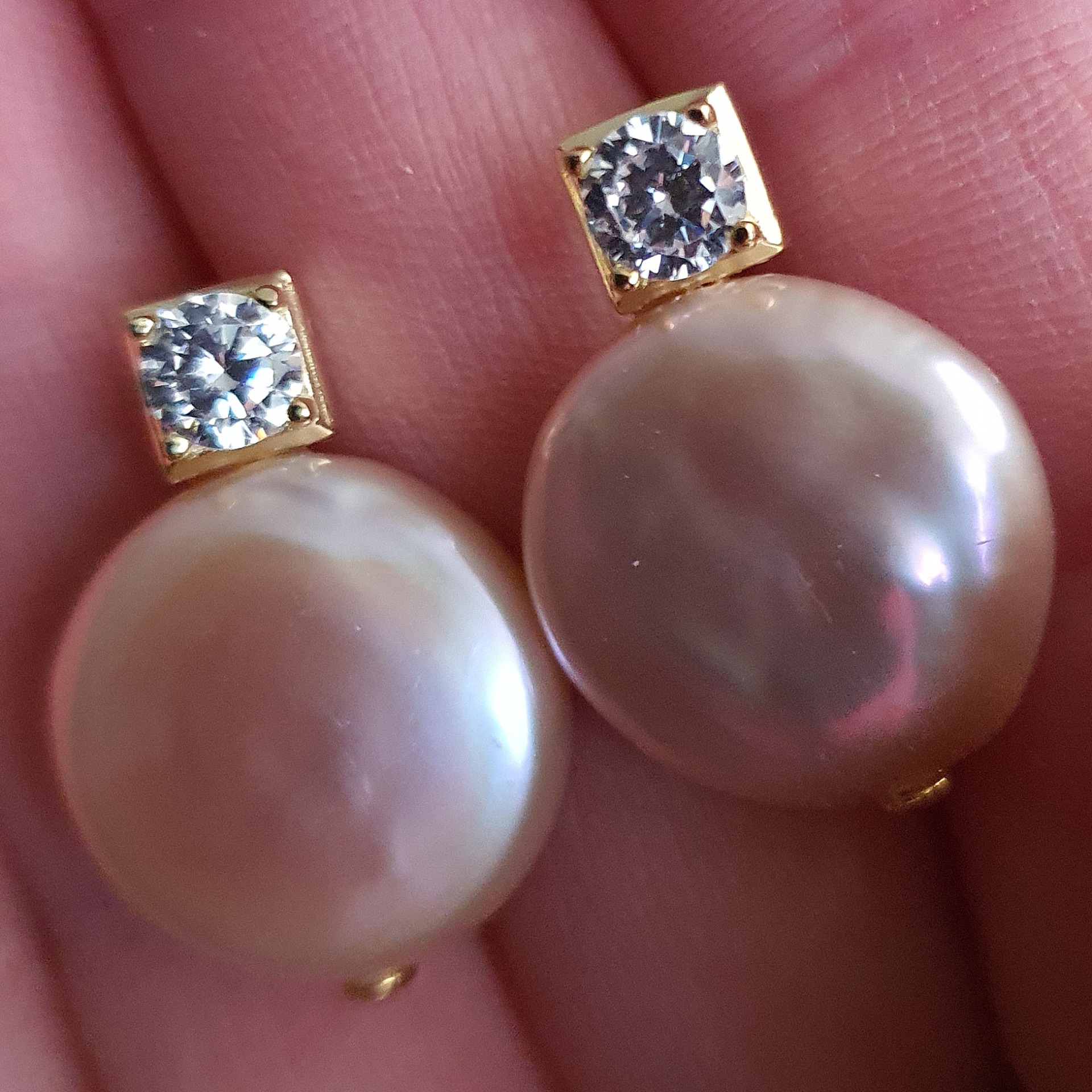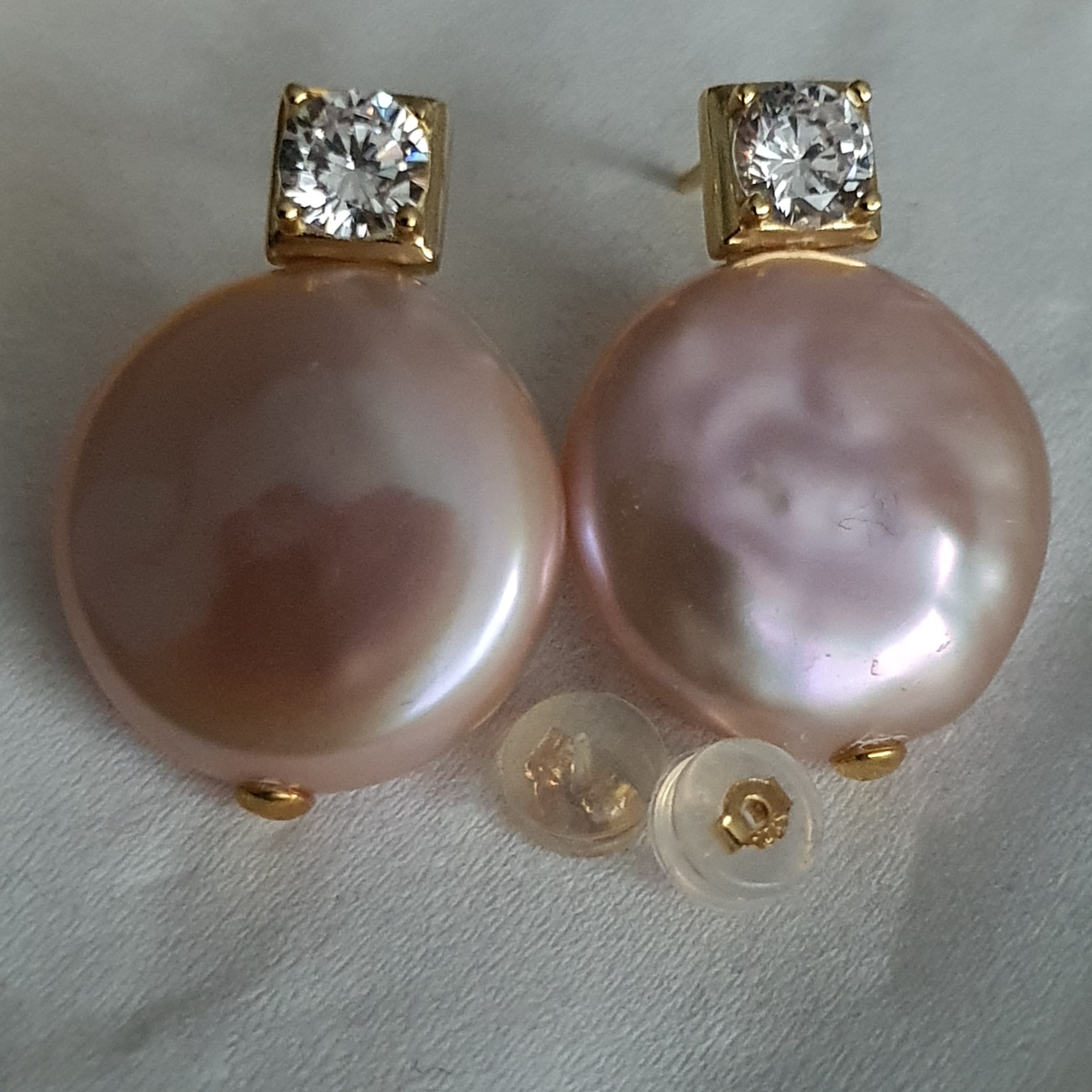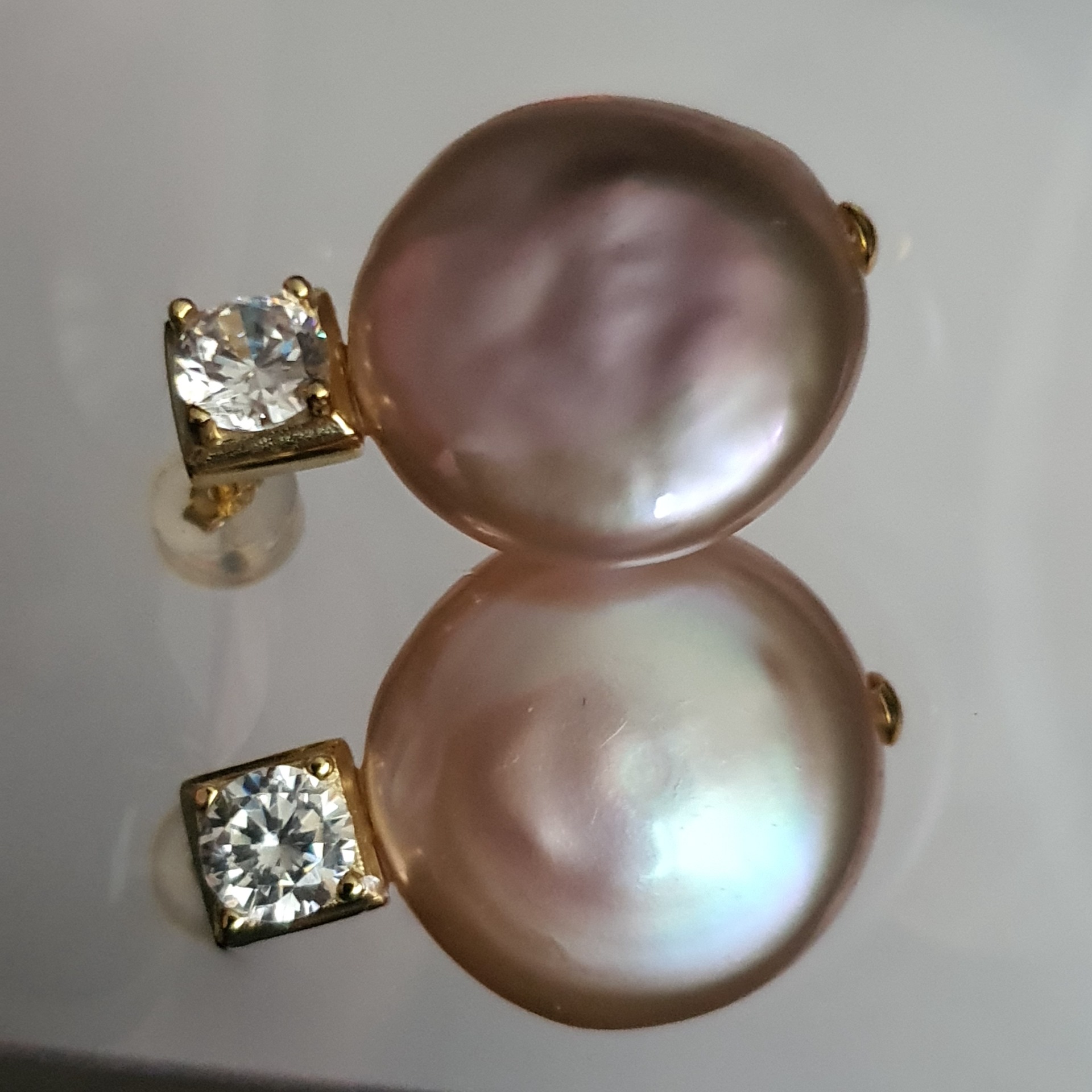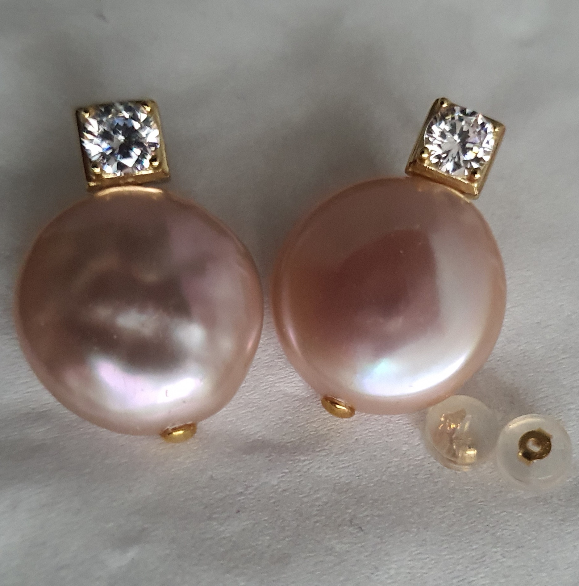 frumosi si eleganti: cercei realizati din argint 925 vermeil aur galben 18k, in greutate de 7.88grame, ornati cu perle naturale roz mari de 17-17.3mm x 7.35-7.45mm; dimensiuni aproximative cercei: 2.5 x 1.74cm