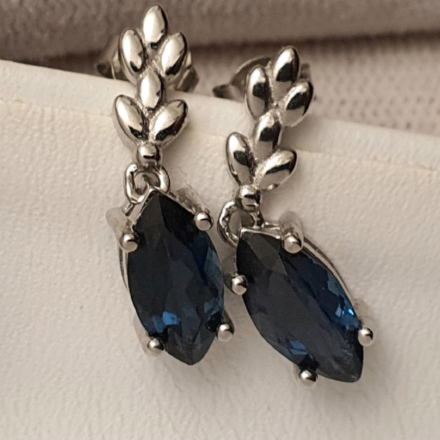 cercei stud din argint 925 vermeil aur alb 14k, 2.46 grame, ornati cu topaze naturale london cu tratament standard (iradiere), fatetate marchiza de 10x5mm; dimensiuni cercei: 19.5 x 5mm