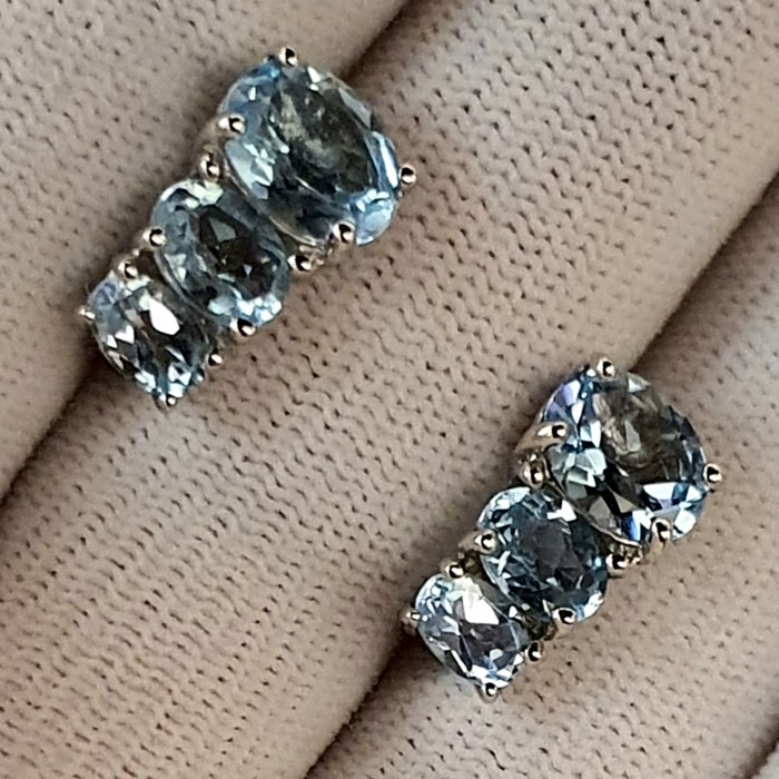 cercei argint 925 vermeil aur alb 14k, 5.61grame, ornati cu cate 3 topaze naturale ovale de 9x7mm, 7x5mm si 6x4mm, cu tratament standard; dimensiuni cercei: 16 x 9mm